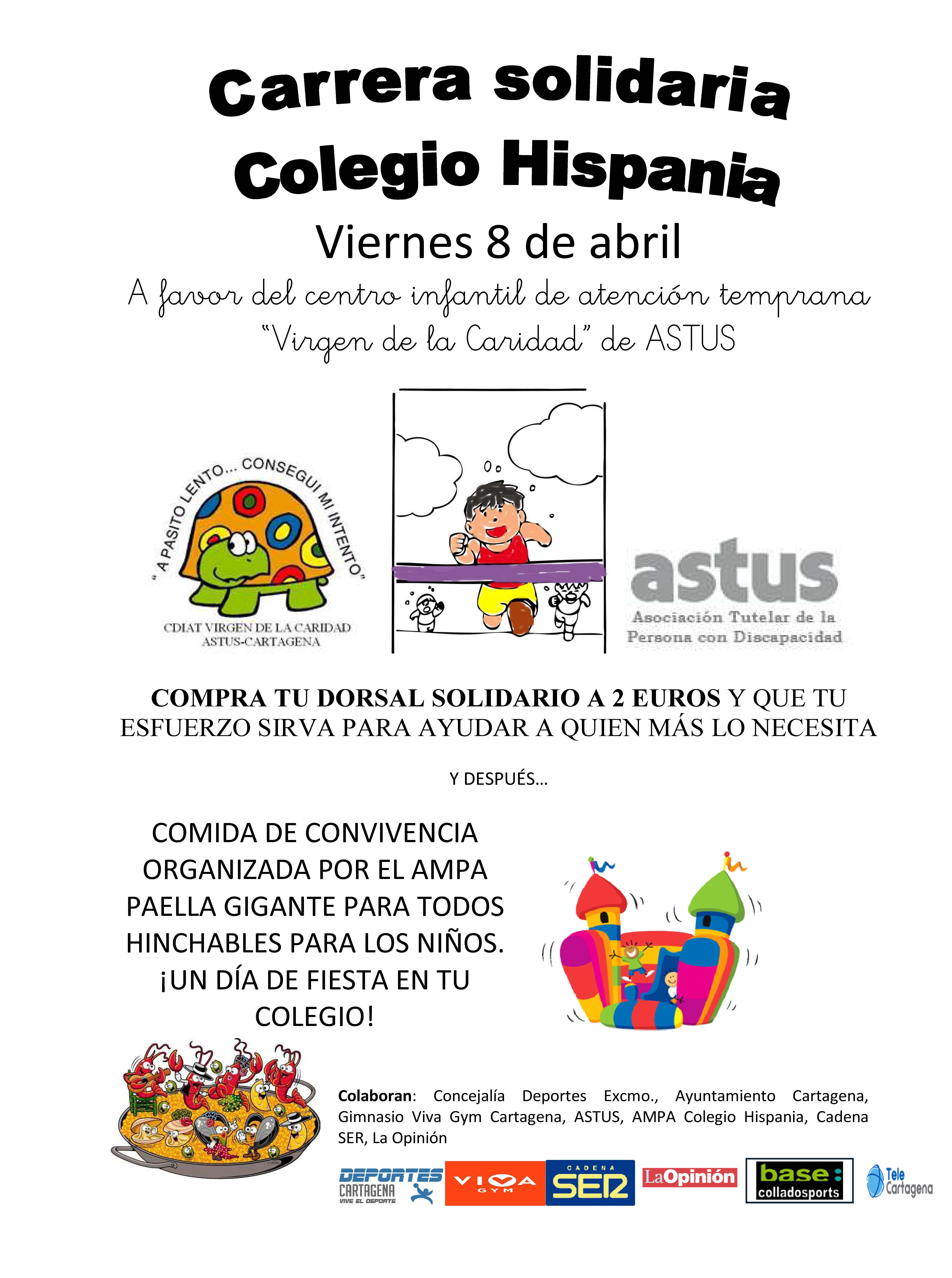 COMPRA TU DORSAL SOLIDARIO POR 2 € EN EL COLEGIO HISPANIA O EN ASTUS (968 50 49 71).