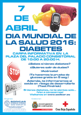 | +Info | ACTIVIDADES SODICAR DÍA MUNDIAL DE LA SALUD | SOCIEDAD DE DIABÉTICOS DE CARTAGENA Y COMARCA - SODICAR - | Desde 07/04/2016 Hasta 07/04/2016 |