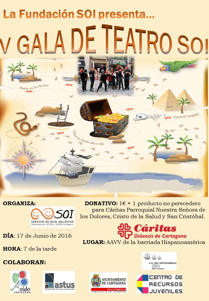 | +Info | V GALA DE TEATRO SOI | FUNDACIÓN SERVICIO DE OCIO INCLUSIVO DE CARTAGENA Y COMARCA. SOI | Desde 17/06/2016 Hasta 17/06/2016 |
